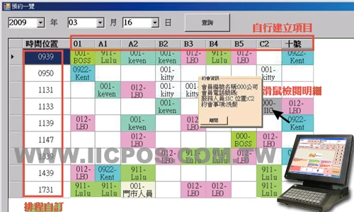 *來店預約指派 *服務排程管理 *預約一覽表 *預約提醒 *顧客資料維護 可